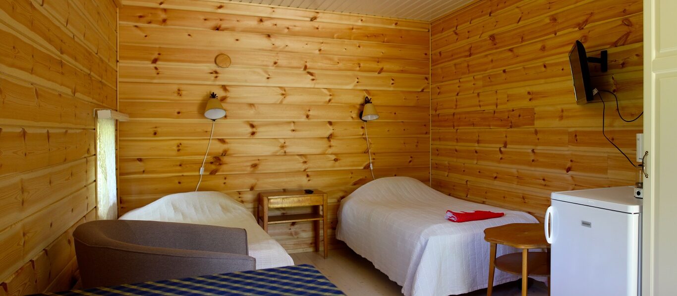 Arvo has 2 separate beds, sofa, TV, refridgerator, coffee maker and microwave oven. The bathroom has a toilet seat, sink and shower cubicle. The beds are already made. You cannot add an additional bed to the value. In the summer, you can get a portable fan in the room, and the window can also be opened.