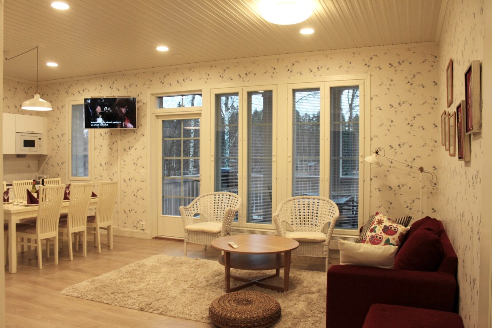 Villa Urho is suitable for a vacation or a long weekend. It’s a great choice if you want to hike in the terrains of Saimaa, visit the rock paintings of Astuvansalmi or get to know the Mikkeli region and at the same time spend a relaxing vacation with your family or with a group of friends.